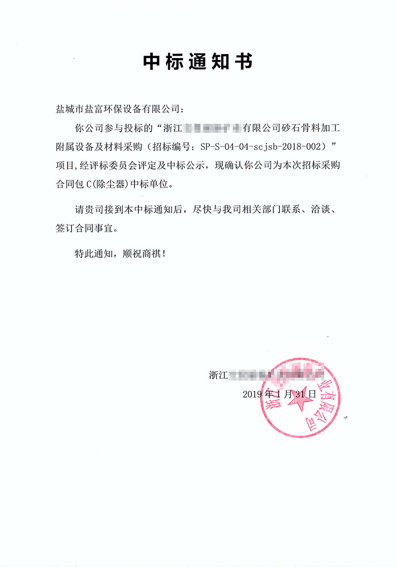 新年歲首,萬象更新。鹽城市鹽富環(huán)保設(shè)備有限公司再創(chuàng)佳績,新年開“新”,成功中標浙江某大型企業(yè)砂石骨料除塵器新項目,實現(xiàn)新年“開門紅”!