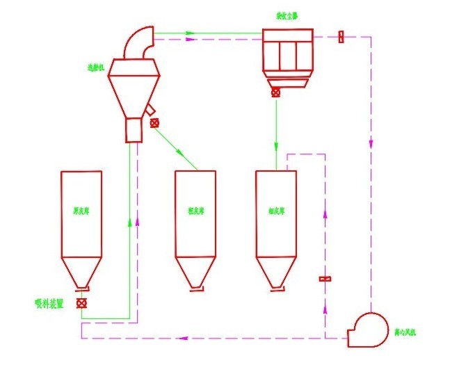 粉煤灰開路分選工藝流程